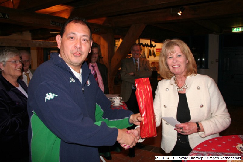- Nieuwjaarsreceptie LOK 2006 in het Streekmuseum | Margareth Roeloffs overhandigd een presentje aan Alfons Schramm